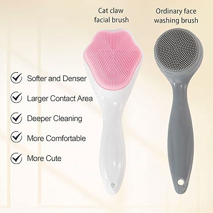 Silicone face scrubber features a cat paw shaped soft silicone bristle design, which gently removes makeup, dead skin, acne, excess oil, and brings a healthy shine to the face, providing you with a comfortable cleaning experience PREMIUM MATERIAL: This brush is made of food grade silicone bristles, which are easy enough to exfoliate, gentle, massage and deep cleans, avoiding skin irritation; Ergonomic plastic long handle and hanging hole design (can be hang with string), comfortable to hold, non-slip, easy to store, quick drying PORTABLE FACIAL BRUSH: The face cleansing brush is lightweight, convenient to carry and store. It’s a good choice for facial cleansing at home or on travel. SPECIFICATION: You will receive 1 manual facial scrubber, meet your daily requirements, convenient to carry in your bags IDEAL GIFT: The cute cat paw shaped silicone face brush is a great gift for yourself, your family and friends